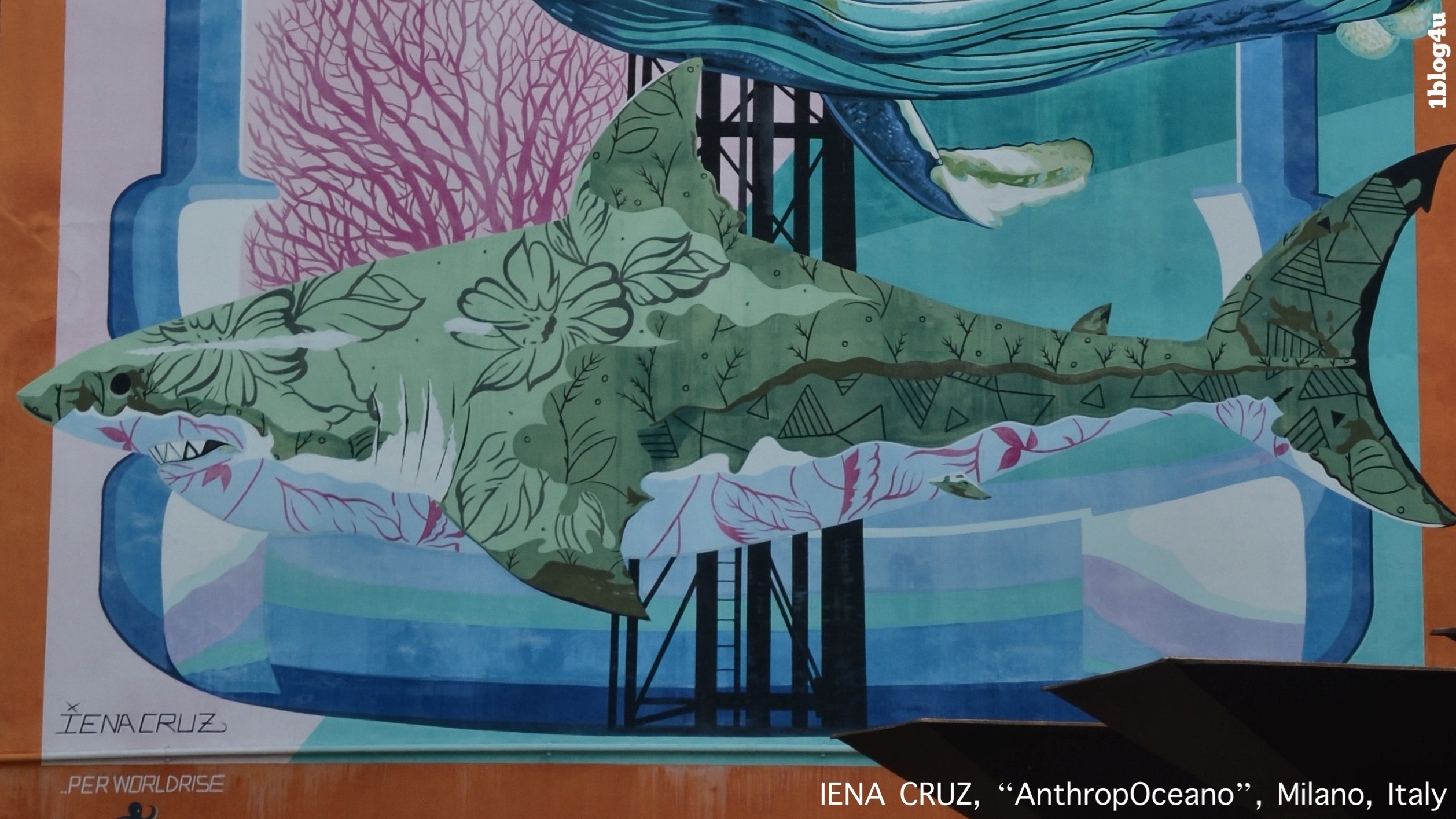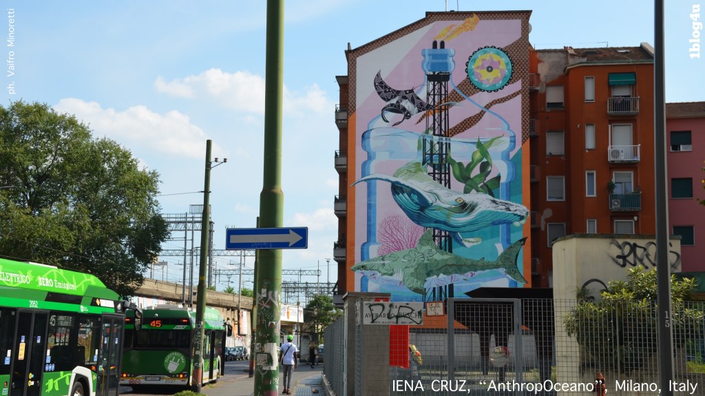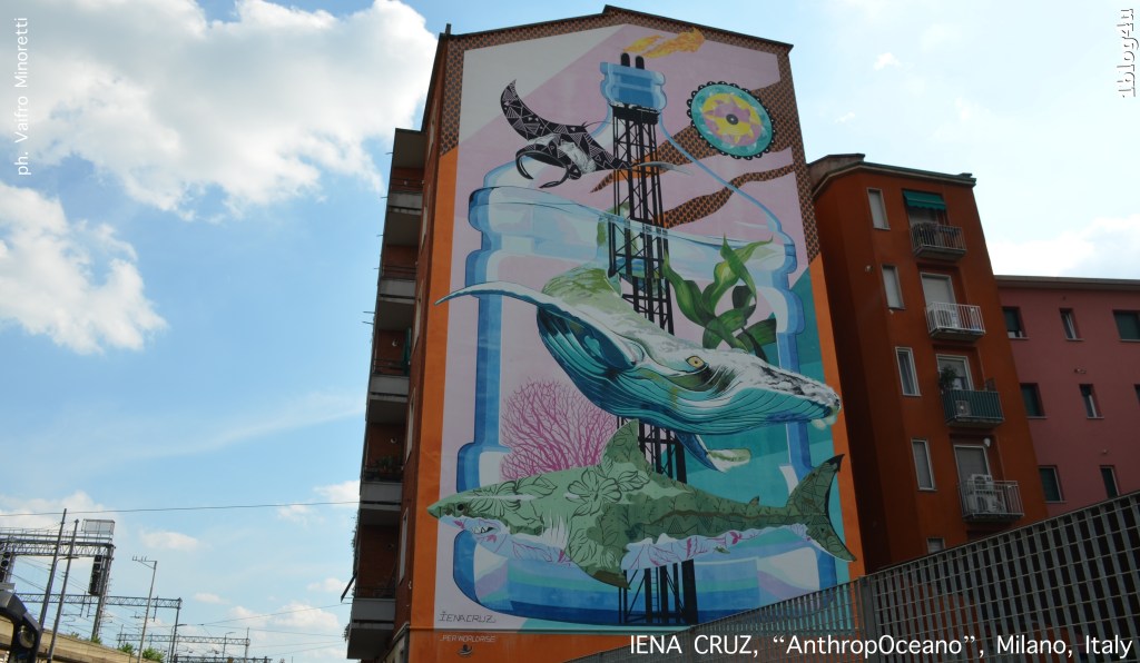 AnthropOceano, is the name of the mural that IENA CRUZ created in Milan in 2019 and that we photographed.