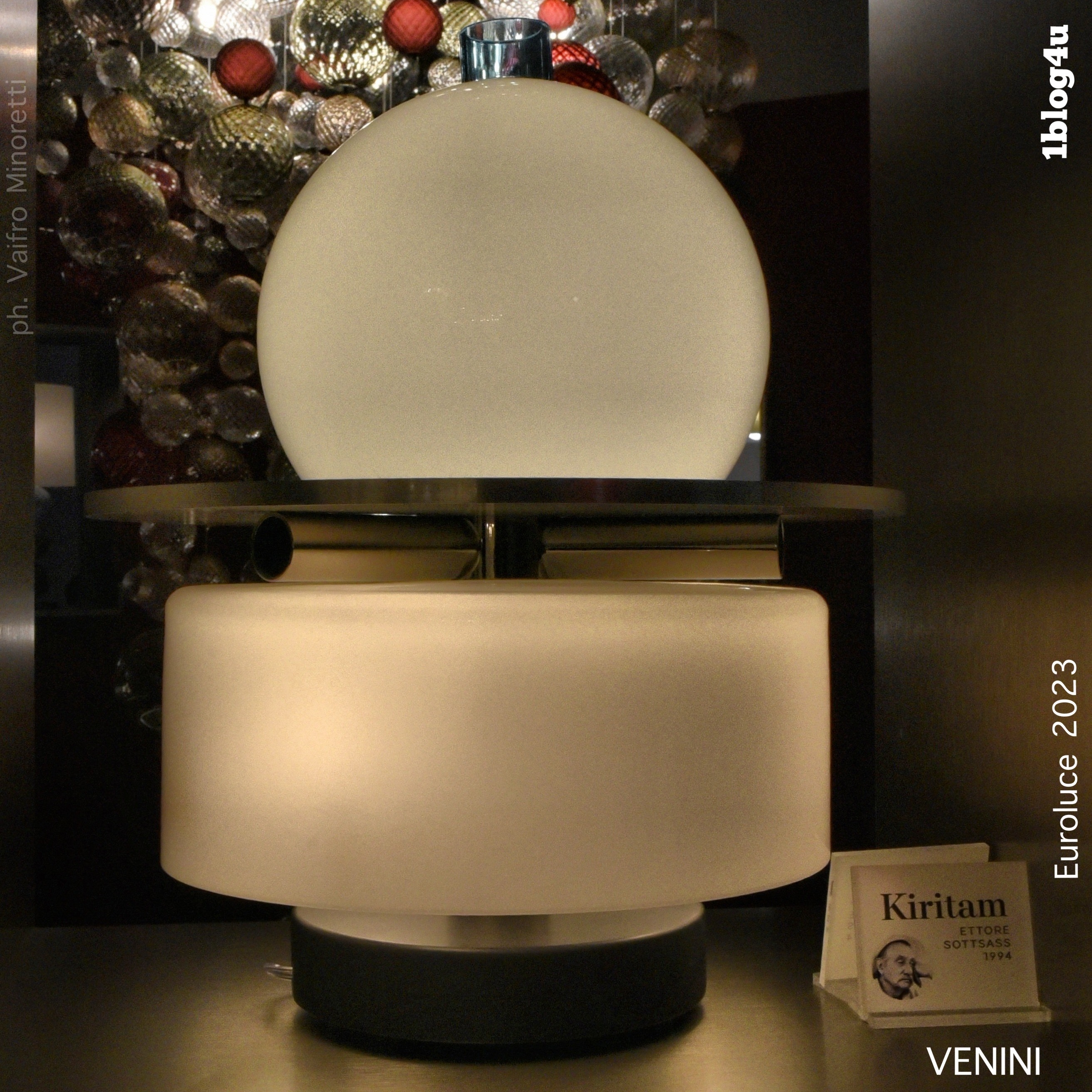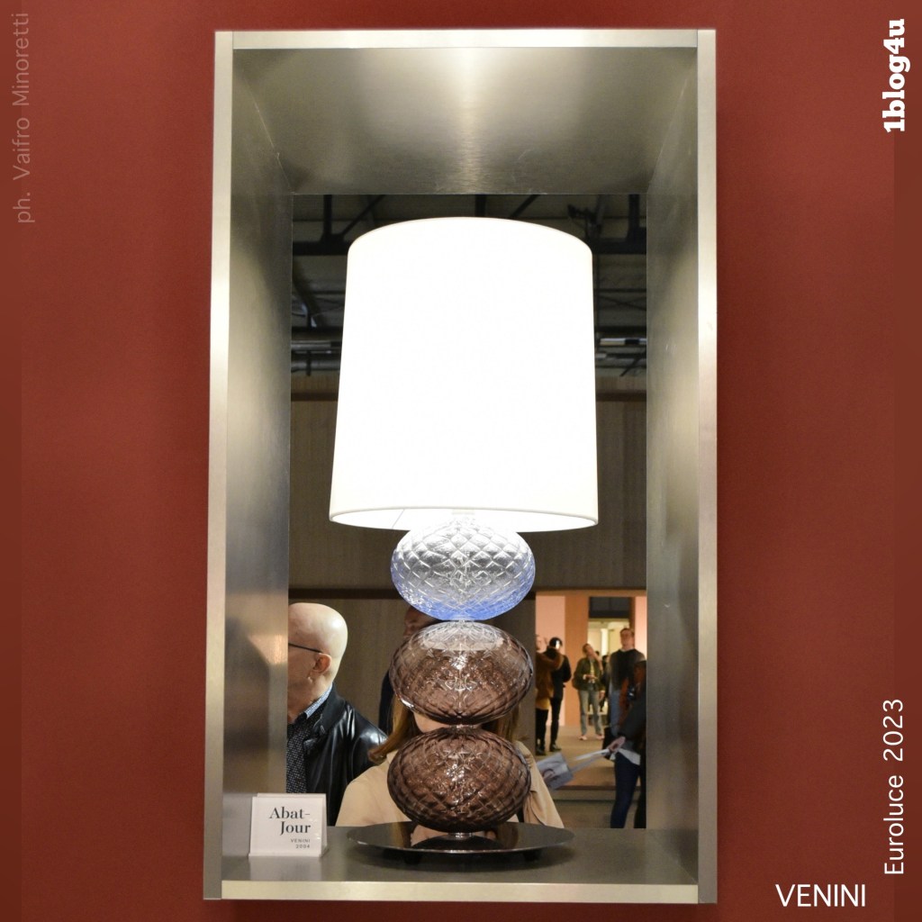 “The elliptical elements of these table and floor lamps are hand-blown and crafted using the “balloton” technique”(Venini)