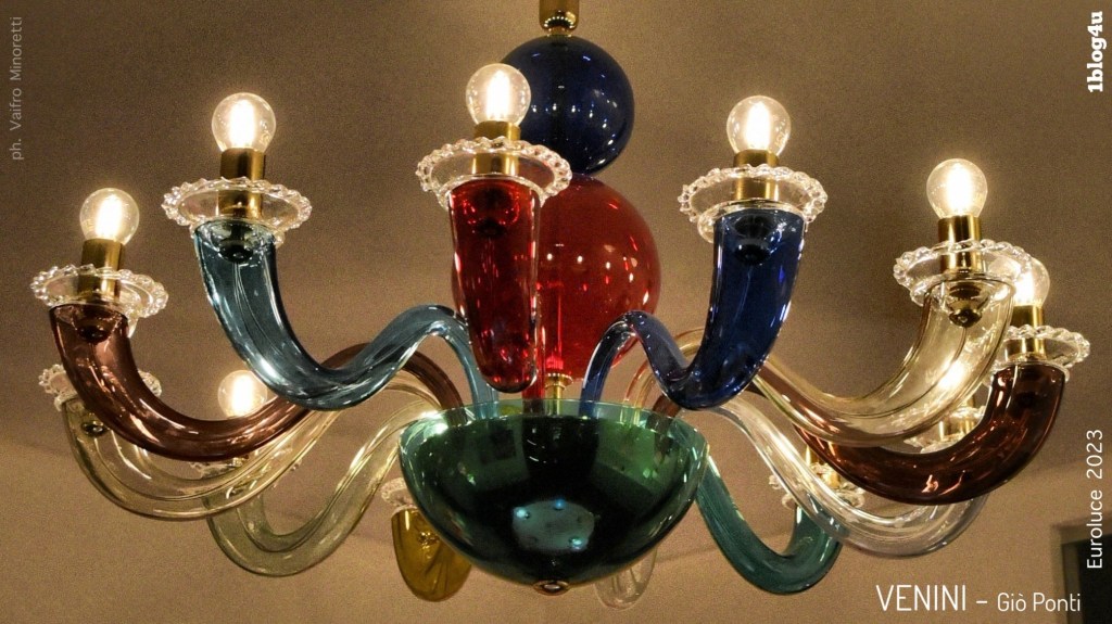 The desire to make a stylistic renewal, while remaining faithful to the fine craftsmanship of the Italian tradition, constitutes the solid basis on which the perfect collaboration between the Venini company and the designer Gio Ponti is founded and it is from this synergy that the Gio Ponti “99.80” series was created in 1946: the combination of clean lines and bright colours still make it a classic appreciated by connoisseurs all over the world. Its absolute originality derives from the alternation of curved arms, each in glass of a different colour.