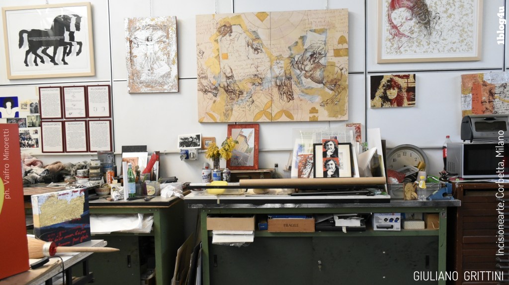 During the Fuorisalone, we brought our friend Maria Elena Savini, designer of the LussoMediterraneo brand, to visit the multifaceted artist Giuliano Grittini in his “Incisionearte” art printing house in Corbetta, taking advantage of his courtesy and availability.
