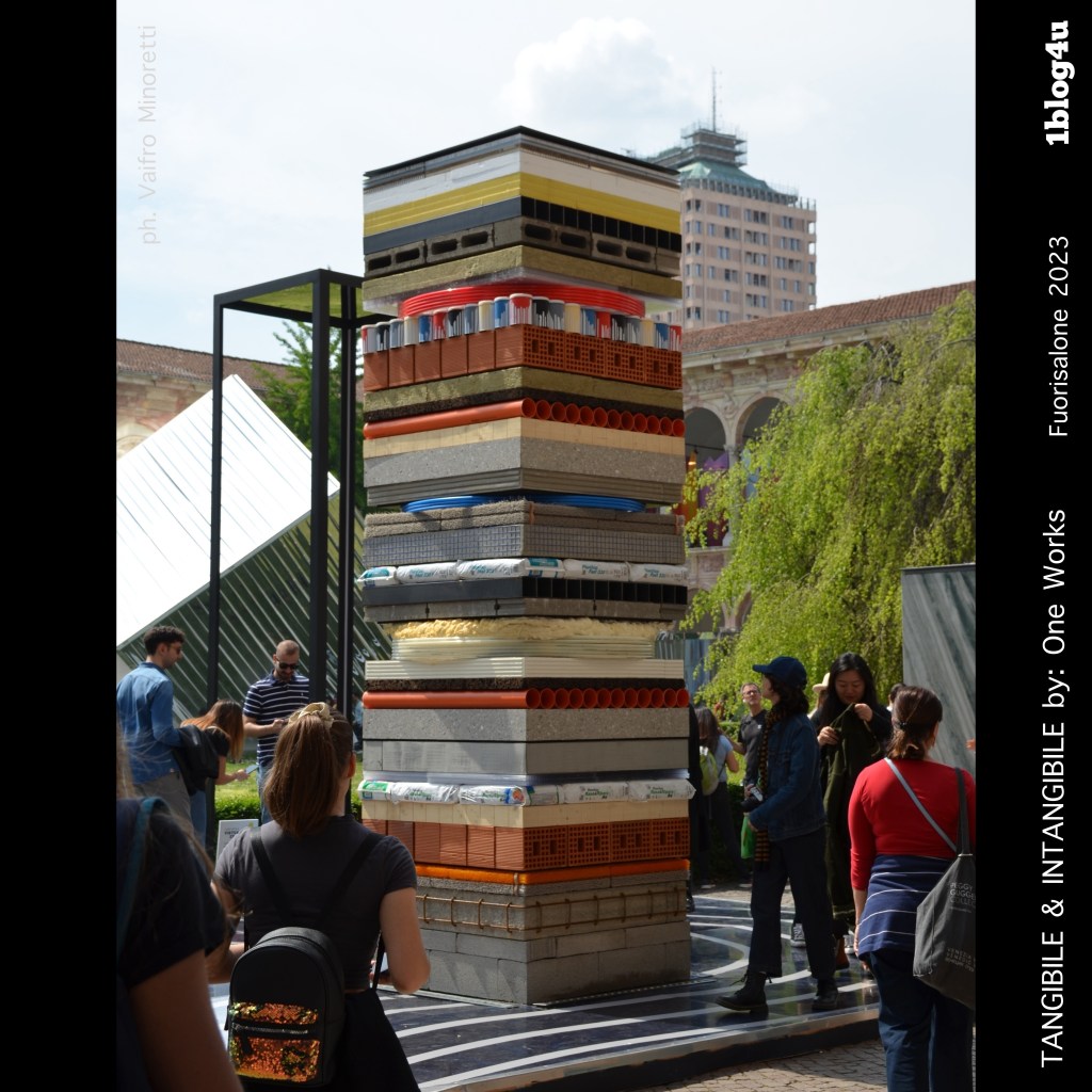 The great totem composed of several layers of the most used building materials represents an awareness of current construction methods.